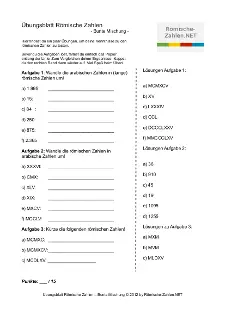 Aufgrund der vielseitigen Nutzung ist es wichtig, Römische Zahlen üben und umrechnen zu können. Die kindgerechten Übungsaufgaben auf dieser Seite sollen dabei helfen. Alle Arbeitsblätter sind an die Übungsaufgaben Klasse 5 und Klasse 4 angelehnt und können selbst kontrolliert werden.